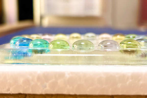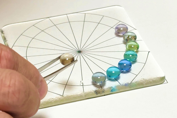 次は、これらの玉を並べるためのベースガラスを作ります。