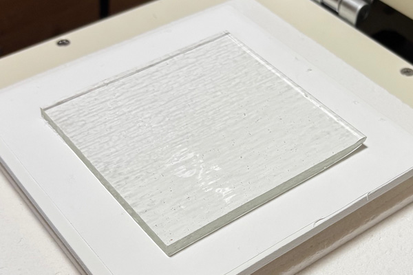 これにより、ガラスと離型紙の摩擦が減り、より滑らかにきれいな丸い形に仕上がります。